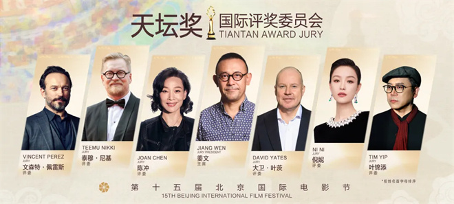 第十五届北影节天坛奖国际评奖委员会主席由中国导演、演员姜文担任,评委分别为:导演、演员陈冲,英国导演大卫叶茨,中国演员倪妮,芬兰导演泰穆尼基,主宾国瑞士导演、演员文森特佩雷斯,中国香港艺术指导叶锦添。