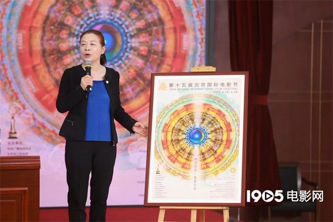 在新闻发布会上,发布了本届北影节的官方主海报。海报由中国电影家协会副主席、中国电影美术学会会长霍廷霄设计。