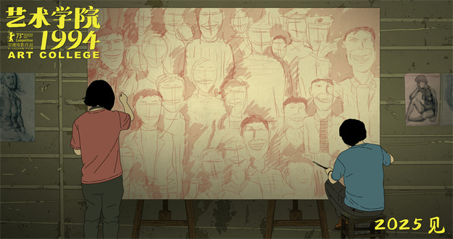 《艺术学院1994》由刘健参与编剧并执导。本片延续其标志性的二维手绘风格,采用了铁线描的技法勾勒人物轮廓,以劲挺线条勾勒90年代艺术青年的棱角分明,背景则以工笔画的细腻笔触晕染出南方艺术学院的温润气质90年代艺术学院的建筑、满墙的艺术海报、好朋友一起躺在草坪上畅想未来的场景等共同构成了时代记忆的锚点。