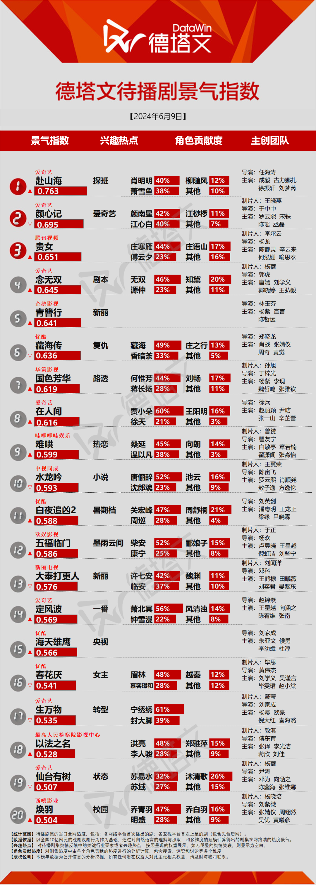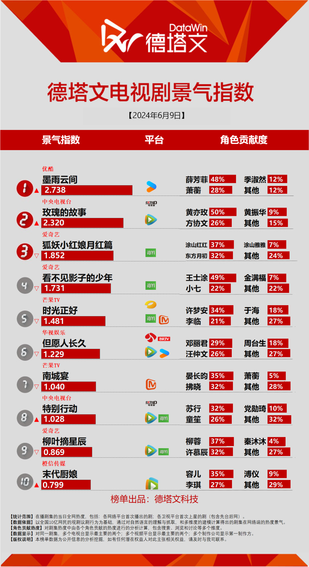 4、数据覆盖首次上星的电视剧和首次播出的网剧。