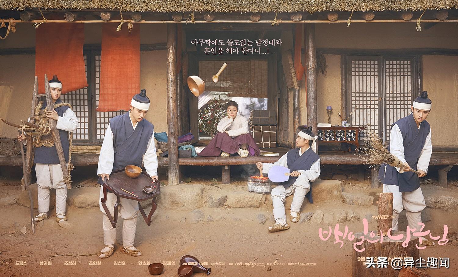 由都敬秀、南志铉、金宣虎、韩韶禧等人主演的《百日的郎君》,剧情主要讲述外貌英气、文武双全的世子李律(都敬秀饰),因遭受杀手攻击掉下悬崖后失忆,而沦落为平民罗愿得,因缘际会娶了既聪明、坚强的全村最年长怨女延洪心(南志铉饰),两人就此展开既状况百出、浪漫的夫妻生活。